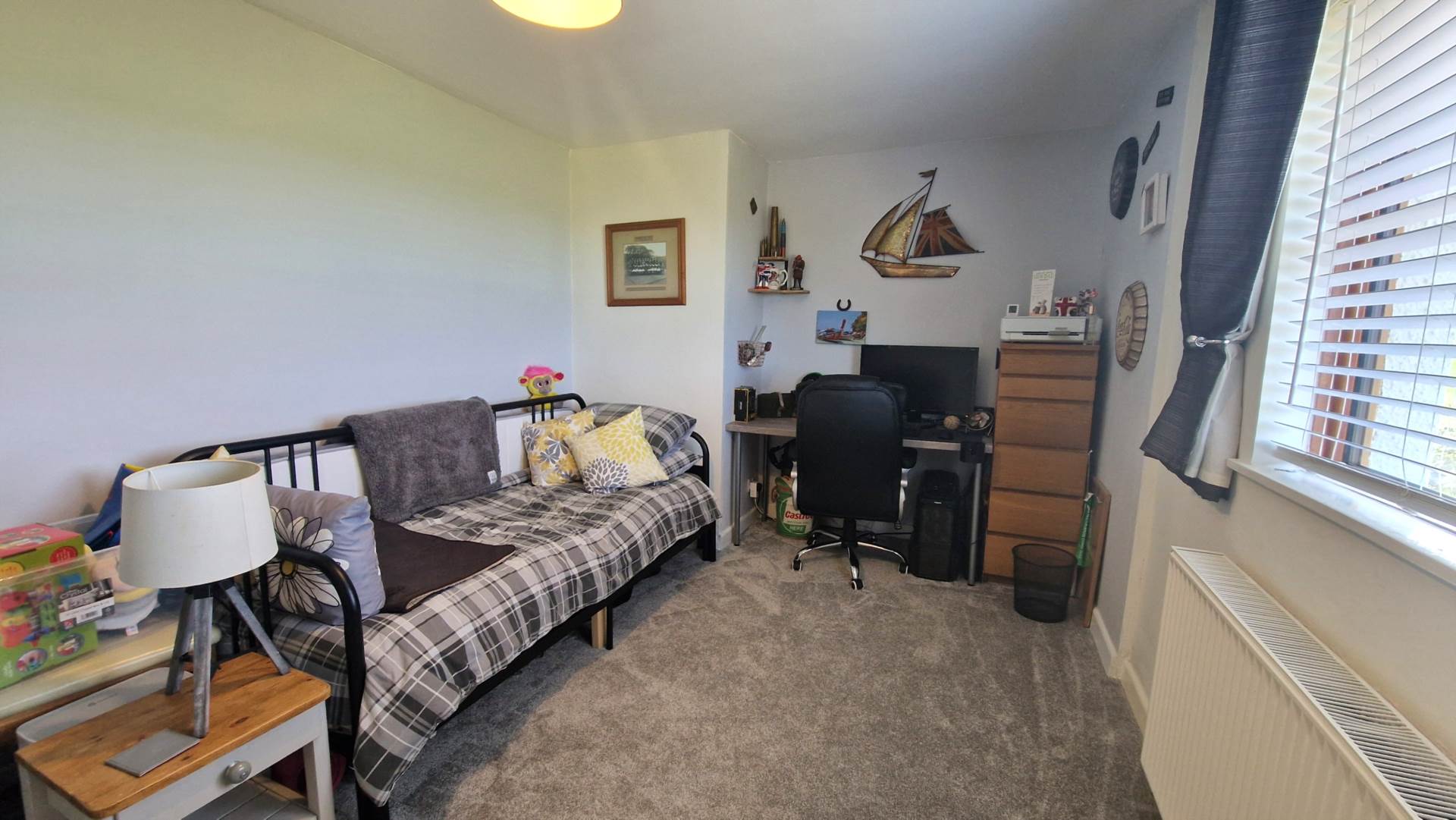 Upstairs there are three bedrooms and a family bathroom. The master bedroom is a large bright double room with windows to the front and rear. The chimney breast has recesses to either side and have been fitted with various storage solutions. There is also a central heating radiator. Bedroom 2 has a slight `L` shape and a window to the front aspect with views over countryside. Bedroom 3 is a similar size to bedroom 2 with a large window to the front overlooking the parking and countryside beyond.