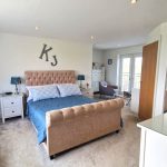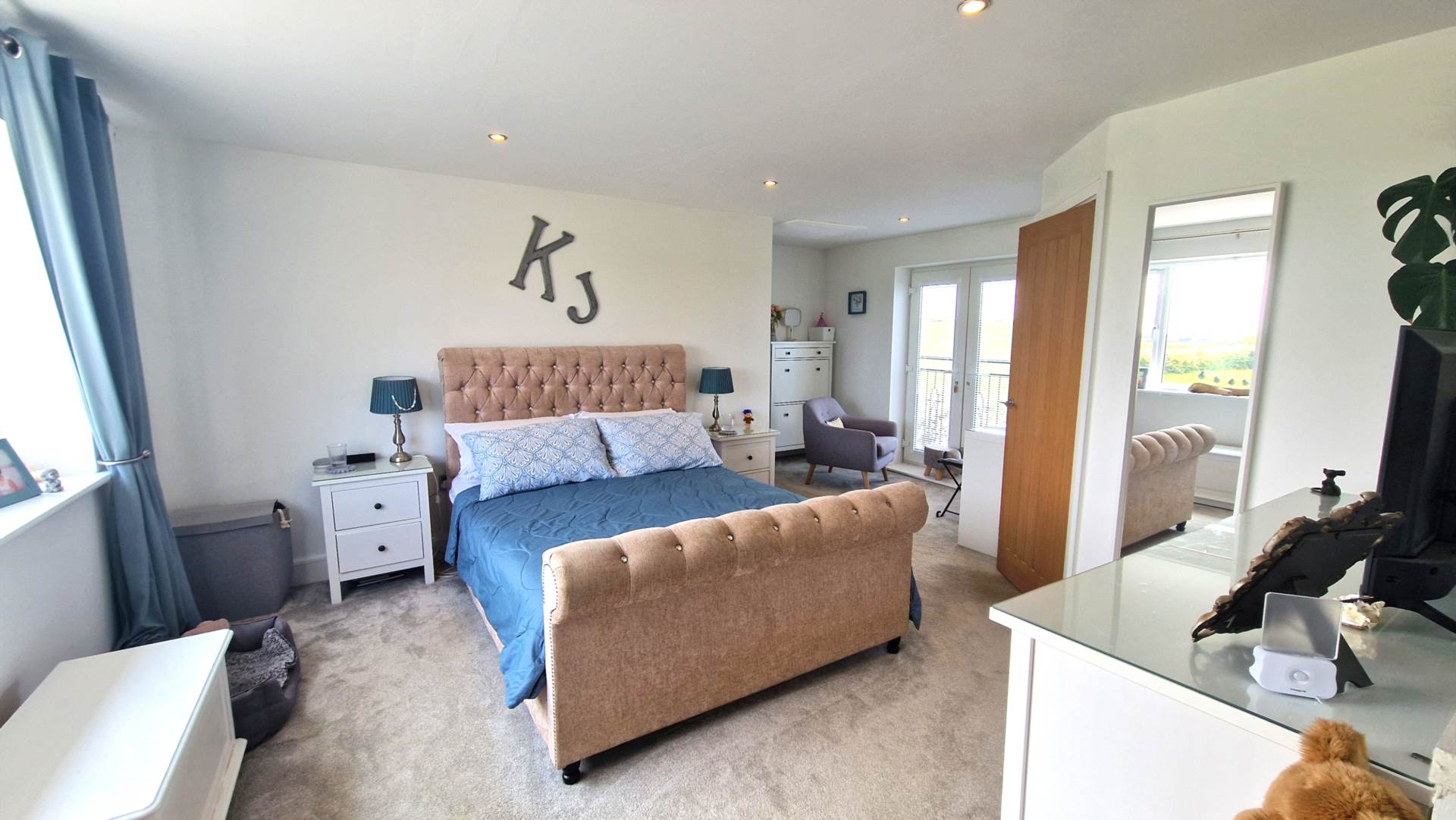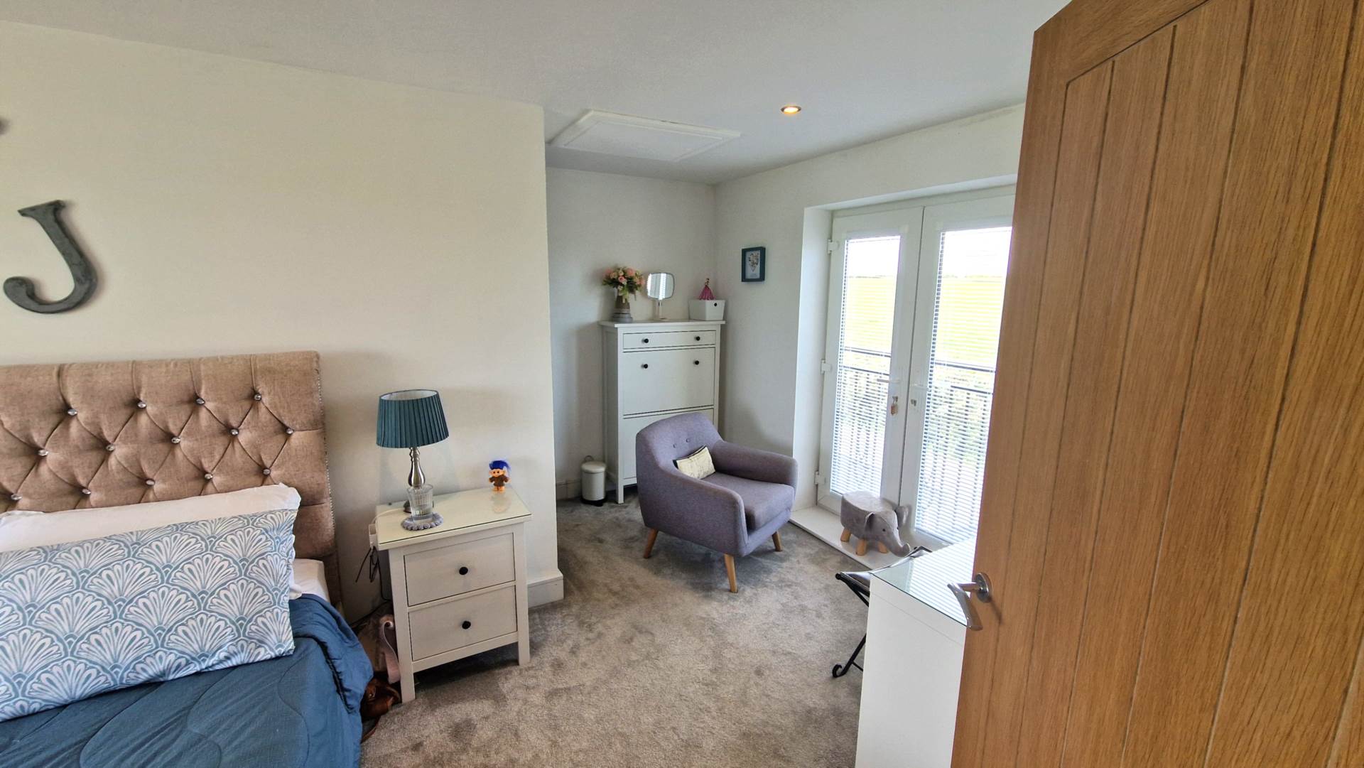 The main bedroom has a similar floor space to the lounge and has a large window to the front aspect and patio doors to the rear opening onto a Juliet balcony. Some of the floor space has been utilised as a walk in wardrobe/dressing area. The en suite is very impressive with a double walk in mains shower, sink on a large vanity unit with drawers and storage, and a low level WC. There is a window to the rear aspect and a large heated towel rail.