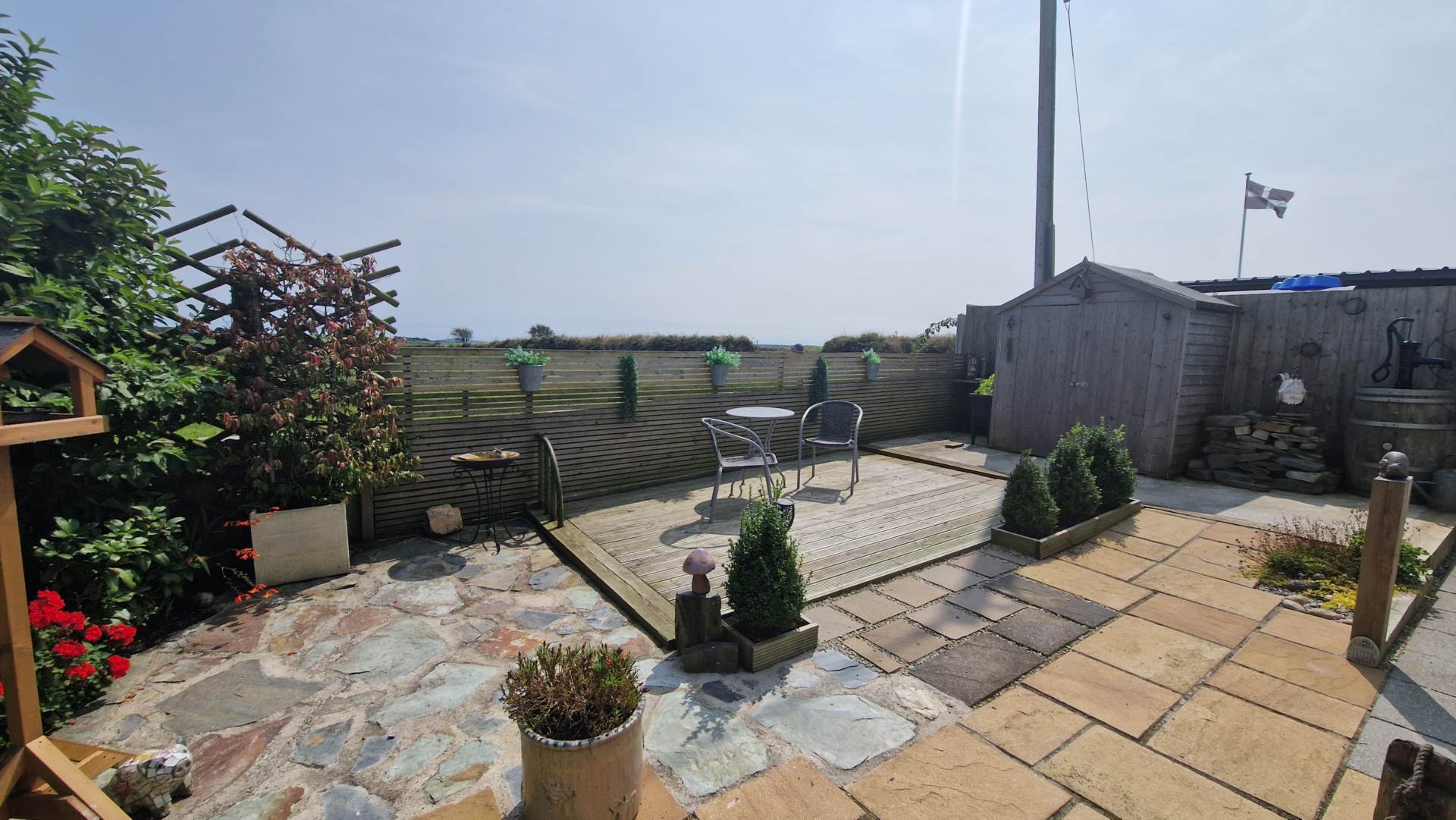 The gardens have been split between the main house and the annex. The main garden is mainly laid to lawn with a rear wall boundary. There is a sun patio to the rear of the garage and a further shaded patio to the rear of the house. A wooden hand gate gives access to the garage and driveway while, on the other side, an archway gives access to the annex garden which is mainly patio with a stone wall and fence boundary. There is a storage shed to one side and a wooden hand gate opening to the side, leading to the front and parking. Both gardens have extensive countryside views.
