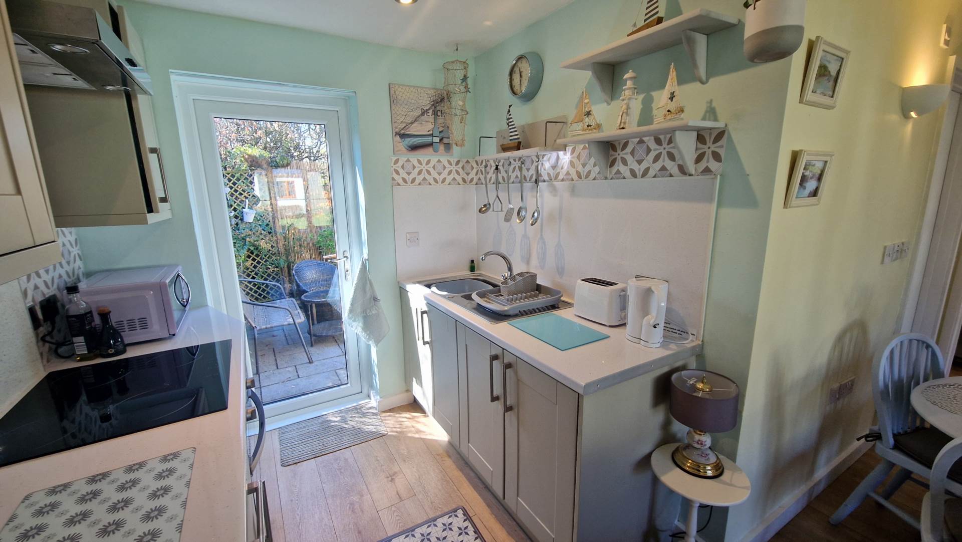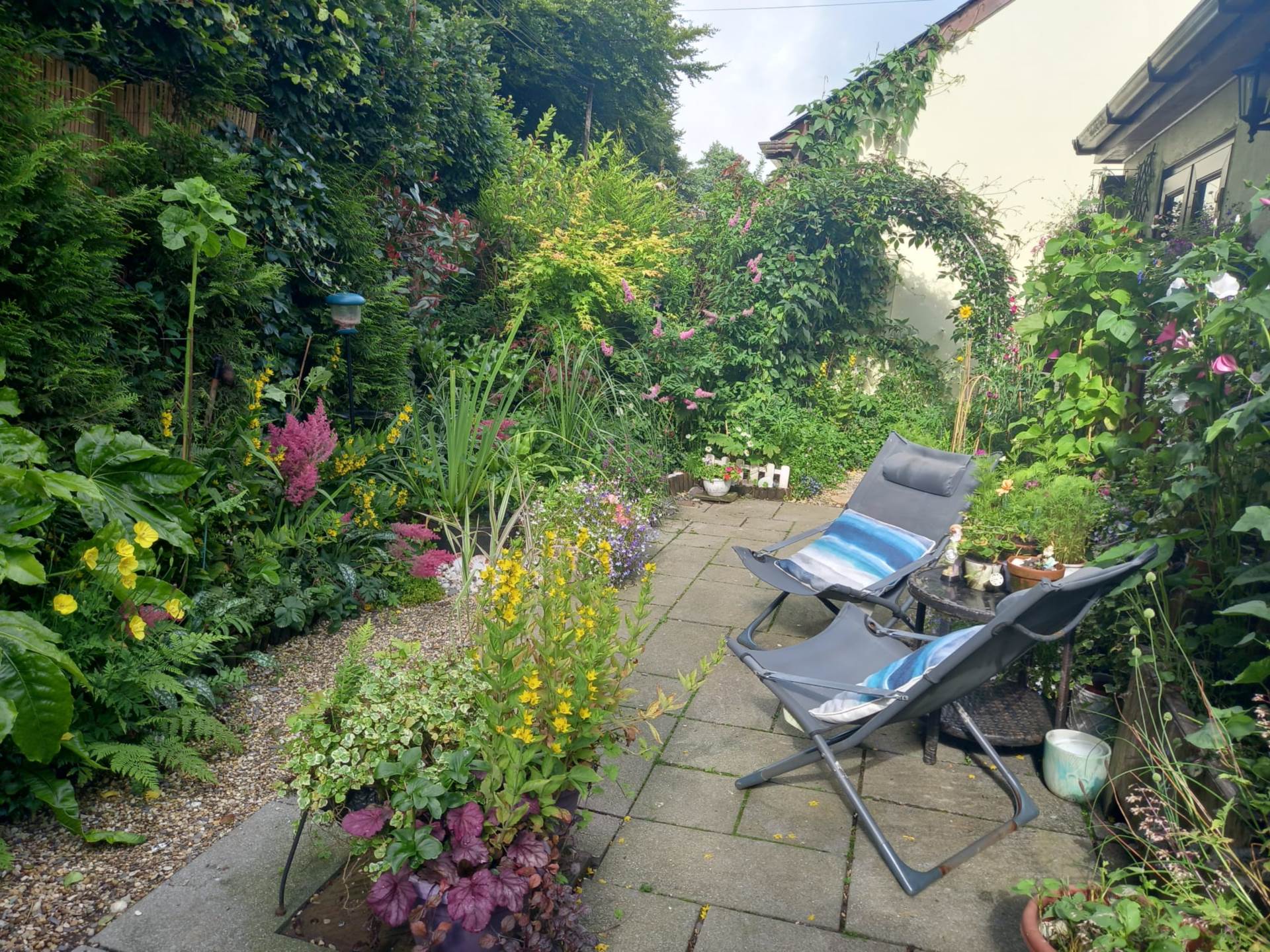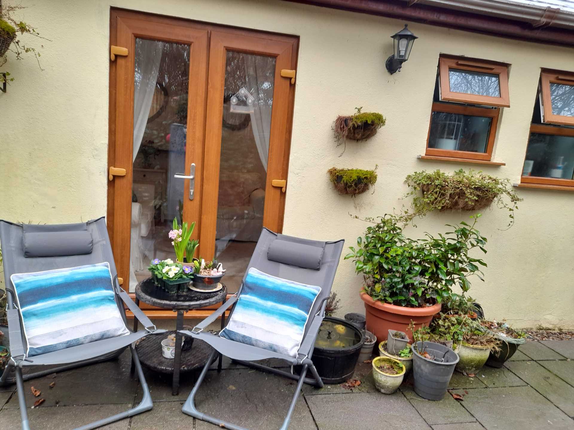 To the front is a pathway to the porch door with well tended lawn to both sides. To the rear is a surprisingly large patio area which is South facing, making it a perfect little sun trap during the summer months. There is plenty of room for a table and chairs . The patio is bordered to the rear with trees and shrubs with reed fencing to the rear and the sides.