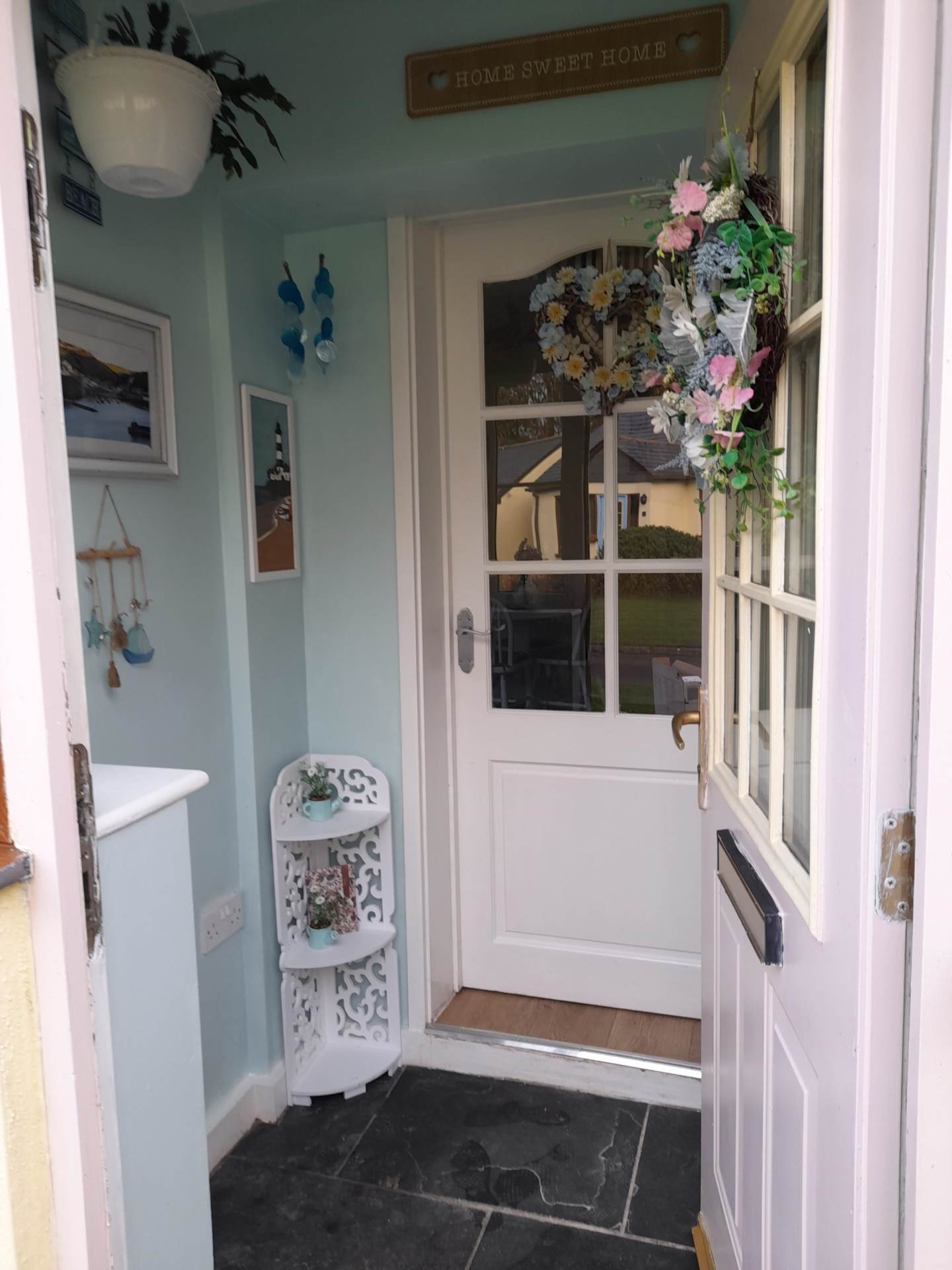 The bungalow is approached from a pathway to the front bordered to both sides with well kept lawn, leading to a part glazed porch door with windows to either side. The door opens into the slate roofed porch. As well as affording the property an extra layer of insulation it is also a useful space for boots and coats, or for drying off the dog before entering the living areas