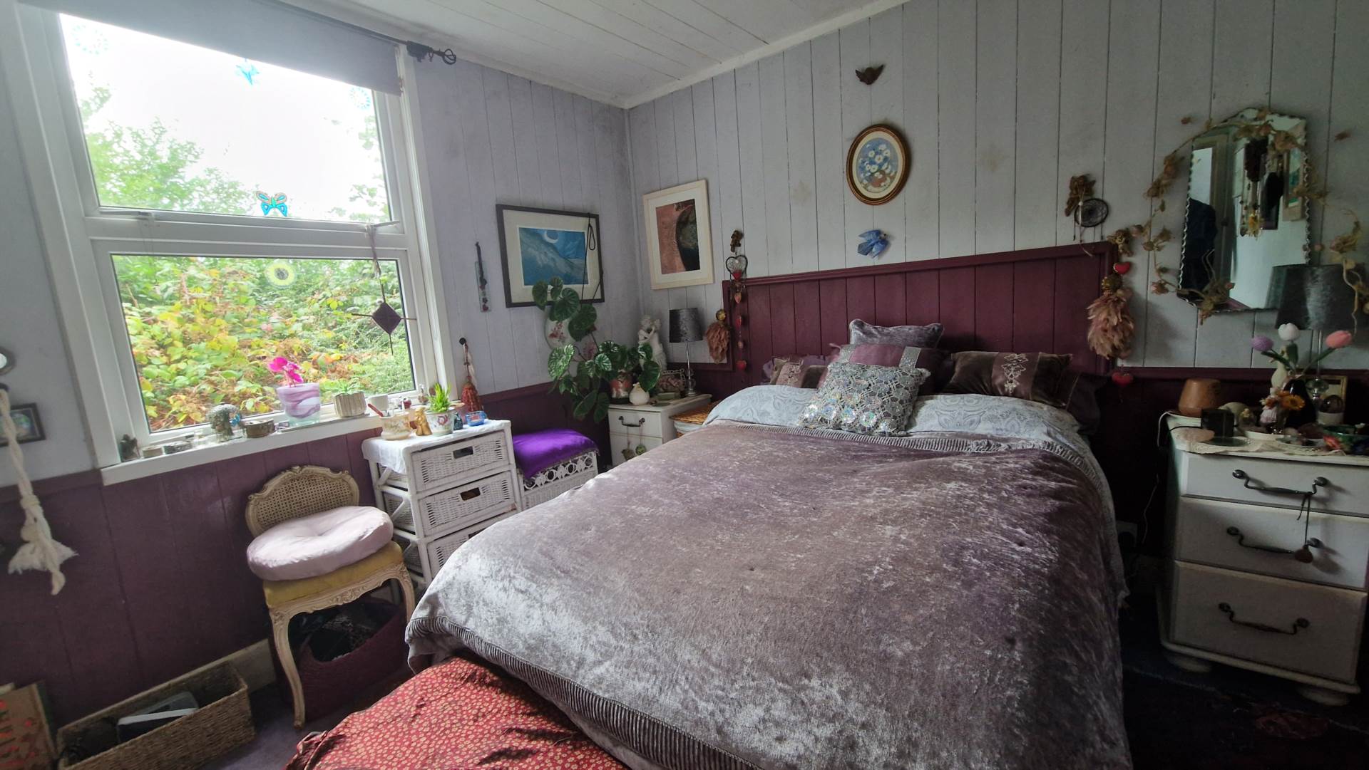 To the front is a concrete driveway with room for 3 to 4 cars, and a pathway leading to the front door. To the rear, front, and side is a wilderness garden with a pathway winding through. To the side is the summer house with decking, and further on is a small pond with a seating area. There are many trees and shrubs surrounding the property giving a real feeling of privacy.