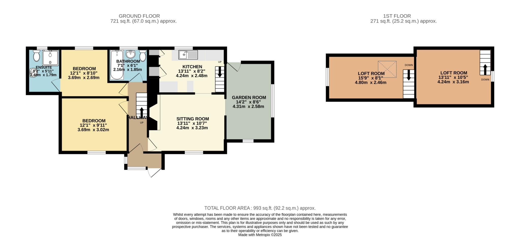 Door to the front aspect opens into the hallway with further doors leading to Bedrooms 1 and 2, family bathroom, and the sitting room. Ladder stairs rise to loft room 1. Electric heater to one wall