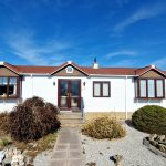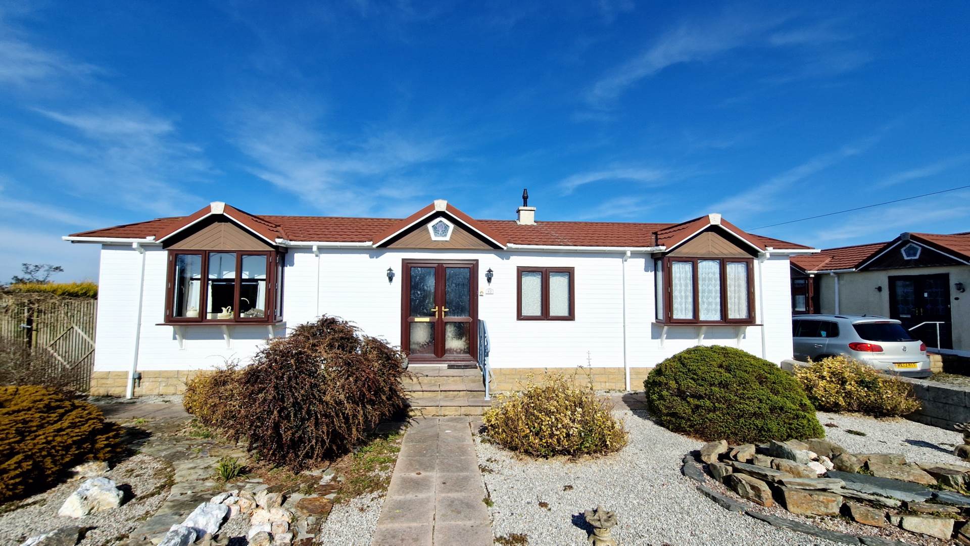An unusually large plot for a park home with large gardens to both the front and rear. The front has been designed for easy maintenance with rocky planting areas. The boundary is a short wall with an iron access hand gate to the front.