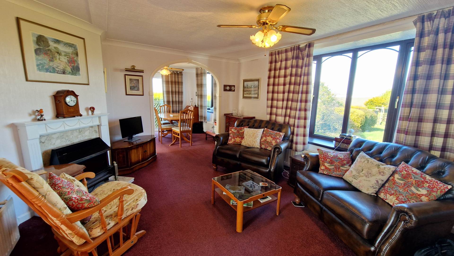 Large window to the rear aspect overlooking the patio and garden beyond. Fireplace with electric fire fitted. Doors lead through to the reception hallway and inner hallway while a large open archway gives access to the dining room. 2 x central heating radiators