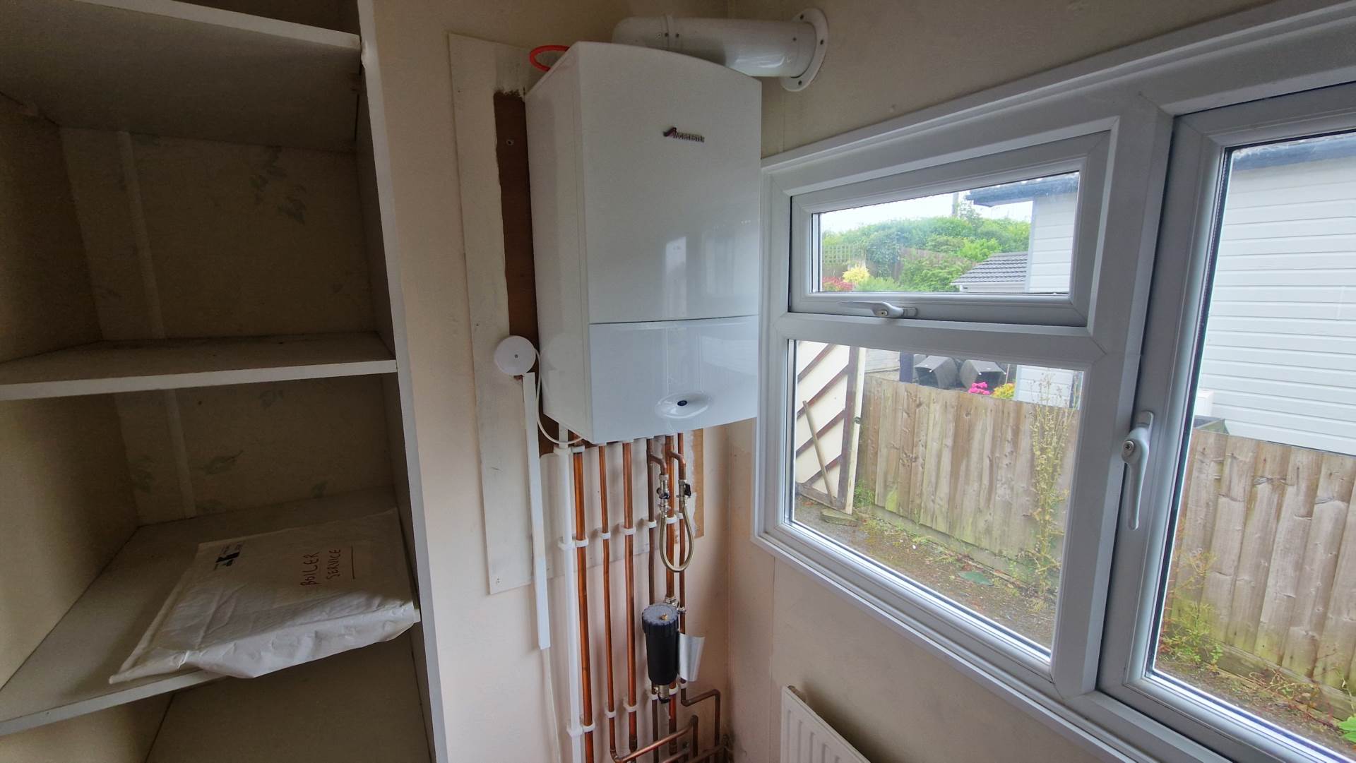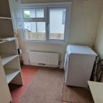 This room was a small single bedroom/study but has been used as a utility room for some time. This is the location for the gas fired boiler and plumbing for a washing machine. Cupboards and shelving to two walls. Central heating radiator.