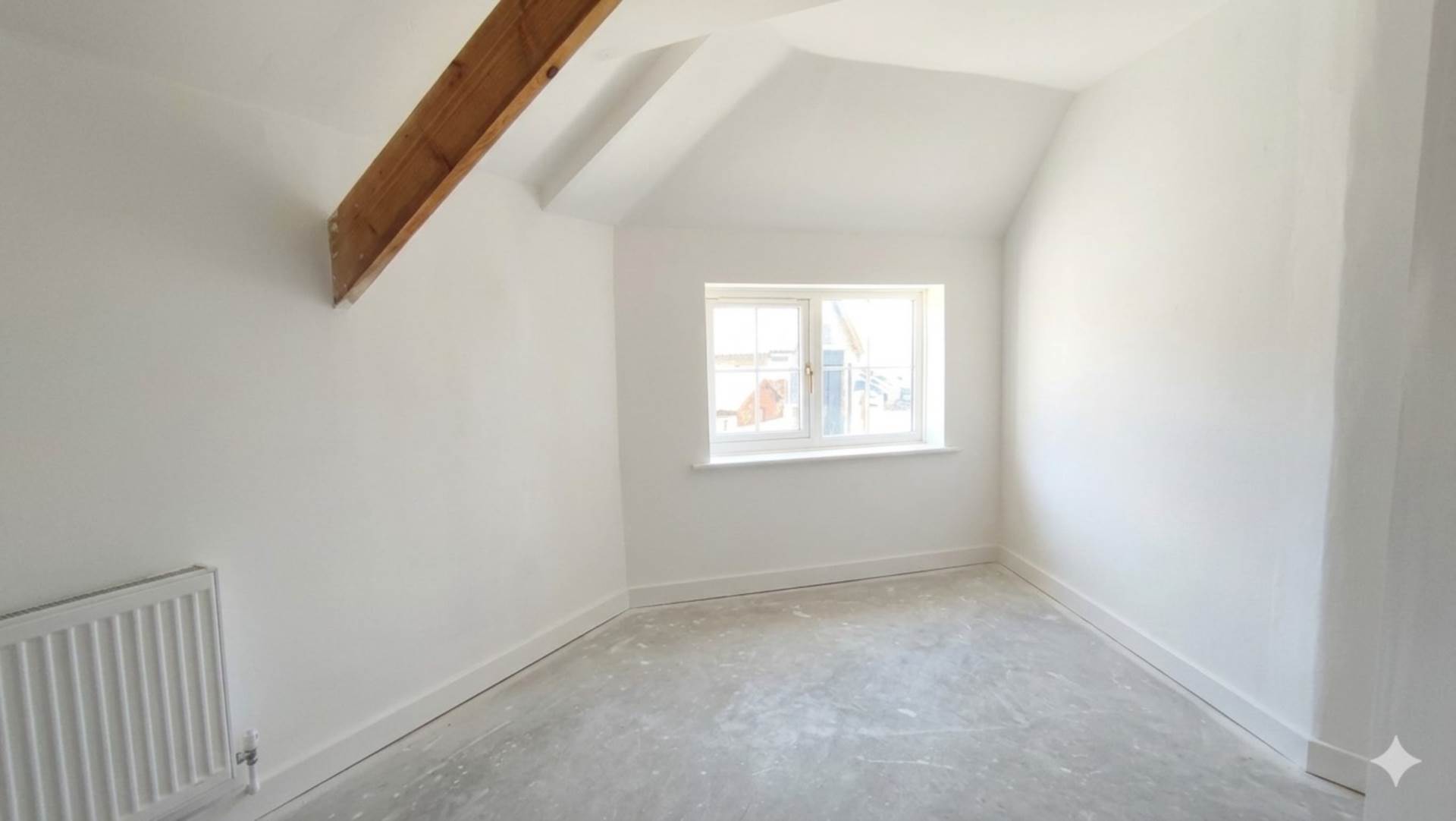 Angled window to the rear aspect with views over the side lane and rear garden. Loft hatch. Central heating radiator.