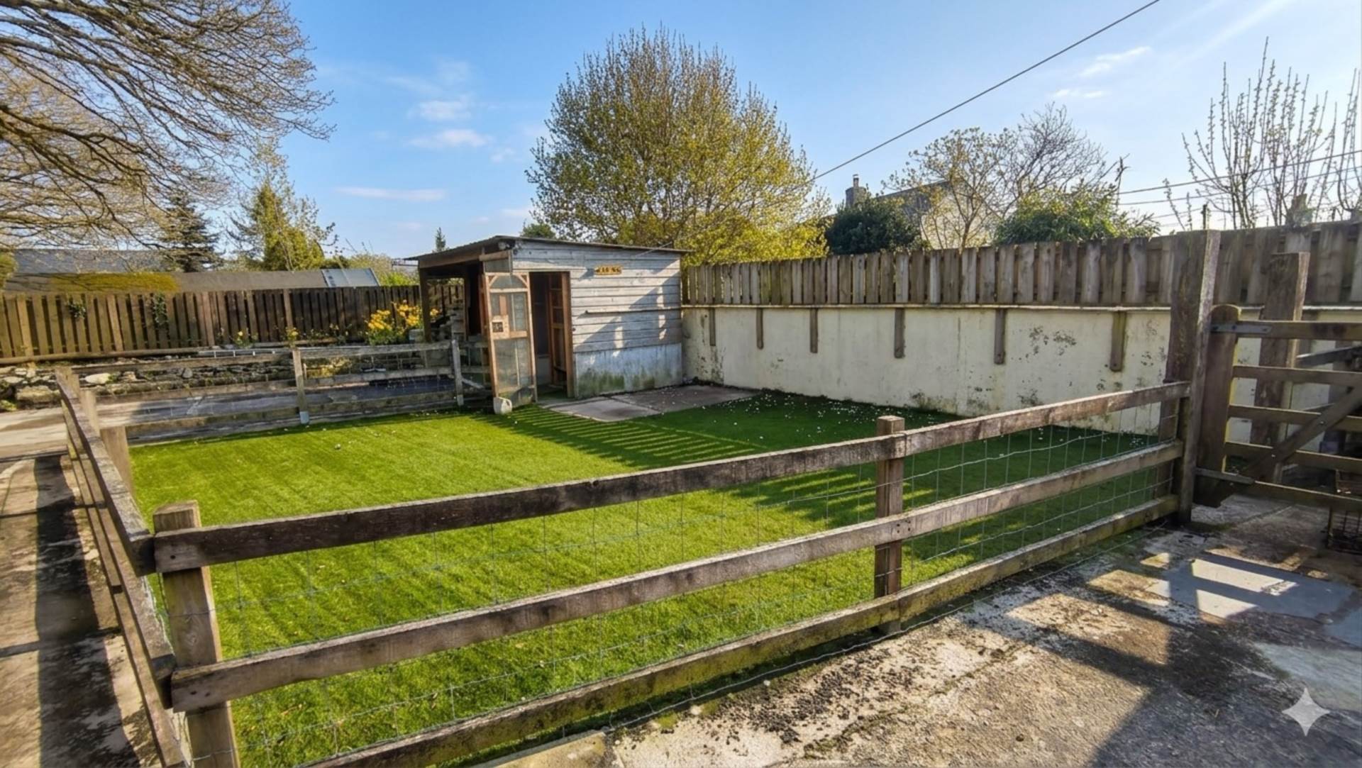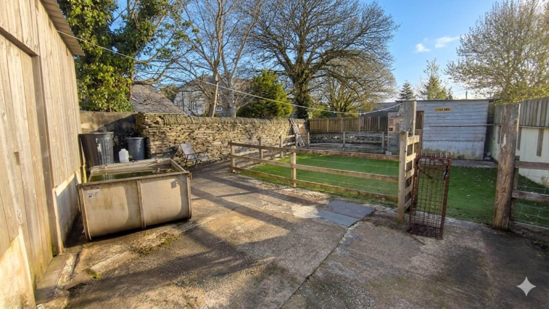 From the back door, step out onto a small slabbed area with a stone and slate log storage bunker. A few stone and slate steps rise up to a large and level rear garden. The garden has been laid out very much with dogs in mind. There is a concreted area to the rear of the carport which winds around a fenced area with Astro turf laid. To the far side is a large concrete standing which could be used to construct a large cabin if required. To the side is a four berth kennel with electric and lighting. this would be an easy conversion to a substantial garden shed. The garden is bordered to the rear by a lovely stone and slate traditional wall,