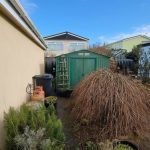 To one side is the driveway with room for one car. Beyond is a lawned area with access to the park home. The front is also lawned and a path to the other side gives access to the kitchen door. The rear has ideal storage areas.