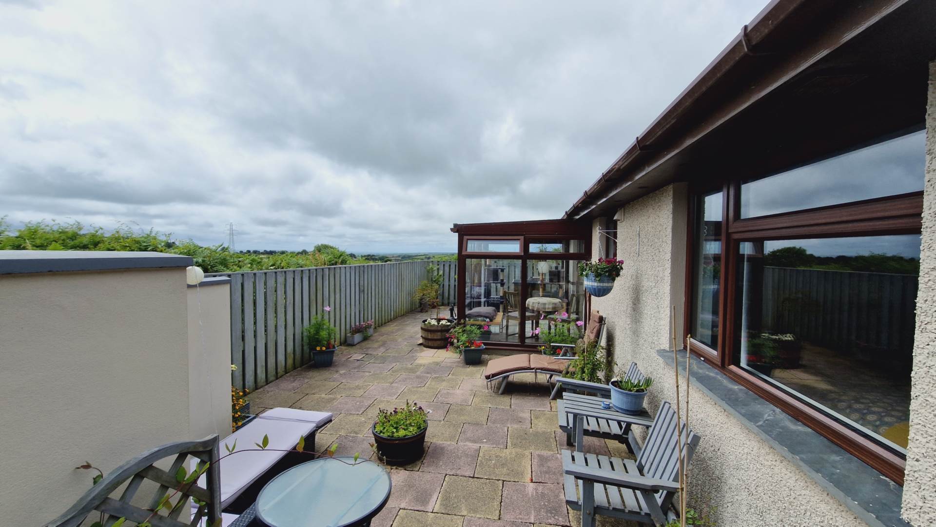 Wood effect upvc frame with full length windows and poly carbonate roof. Sliding patio doors lead out to the rear garden. Quality wood effect laminate flooring. Electrical points.