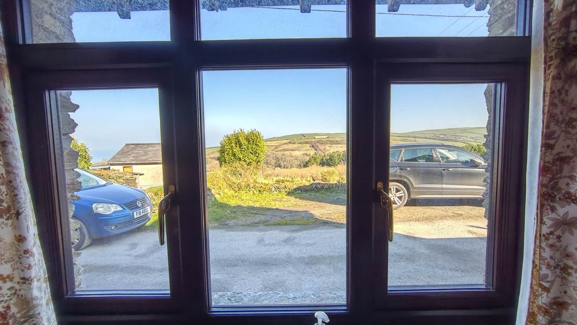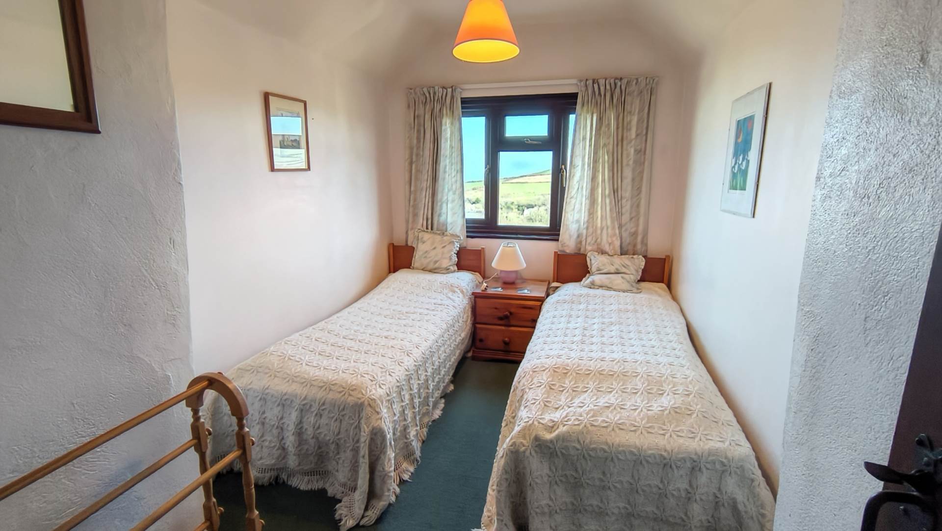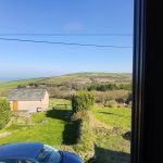 Upvc window to the front with views over countryside and the sea to one side. Small recess used as hanging space or wardrobe.
