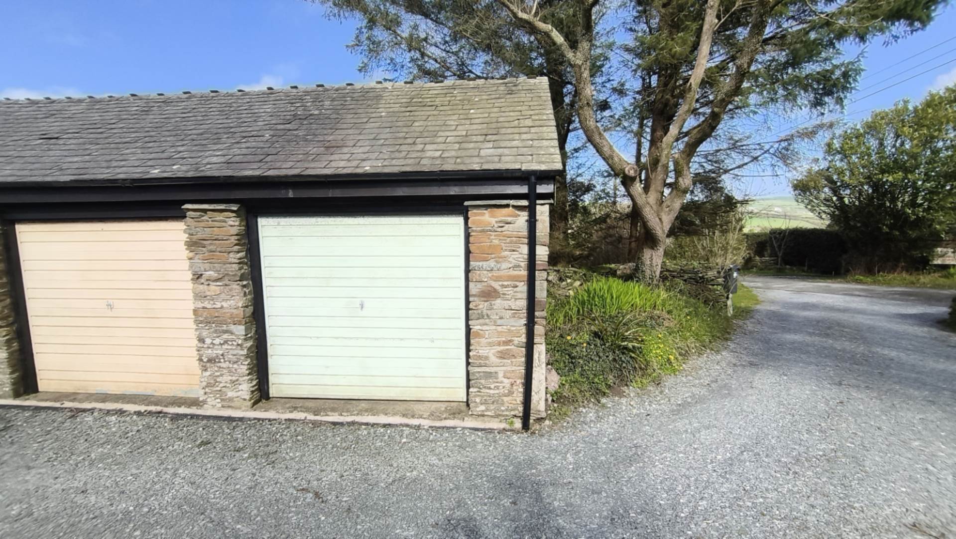 Detached from the main property, located slightly further up the access road in a group of three garages. Good size single garage with plenty of storage space.