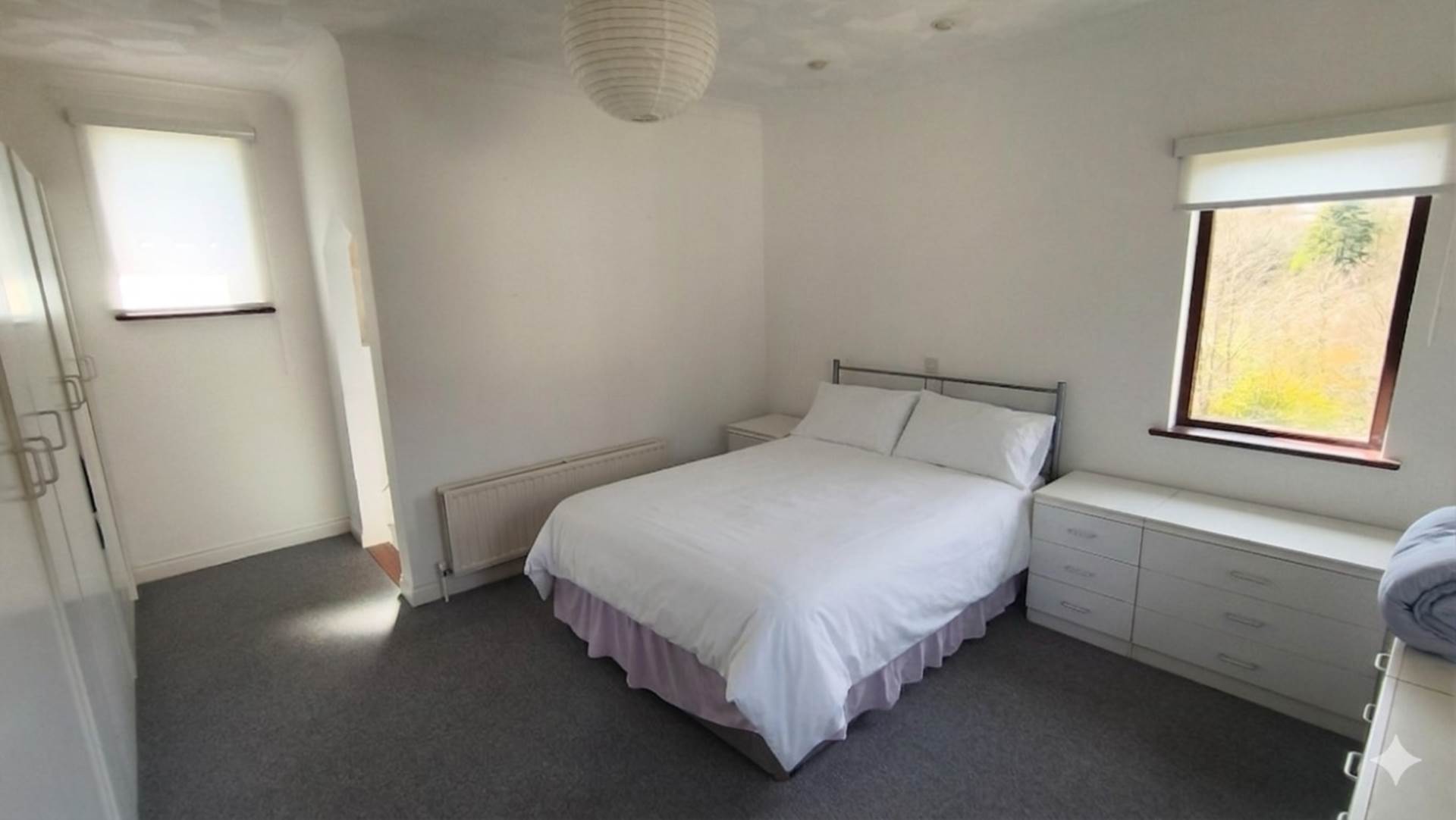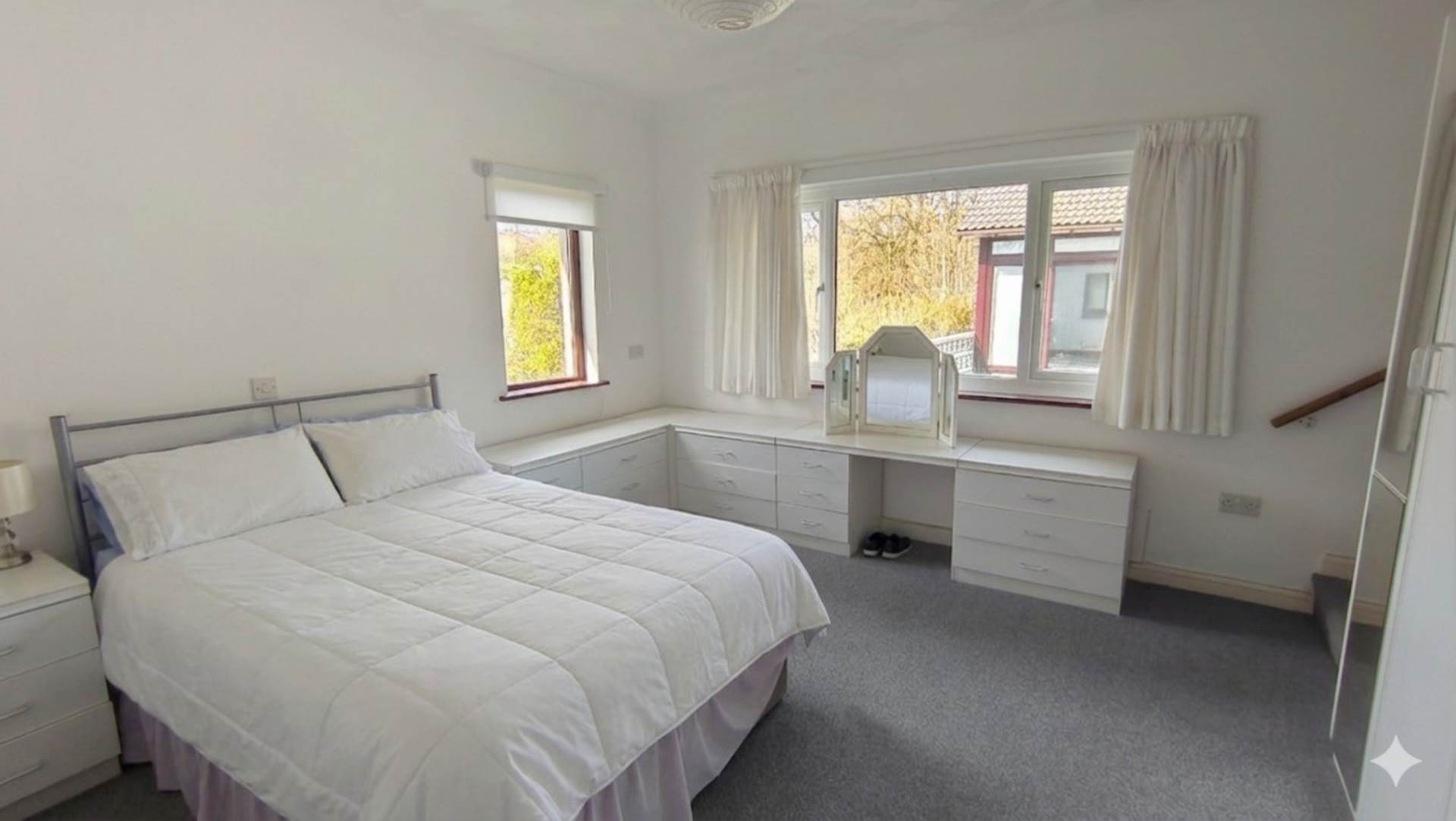 Bright and airy room with two windows to the side aspect and a further window to the rear aspect. Long row of built in wardrobes. Open archway to the en suite shower. Radiator.