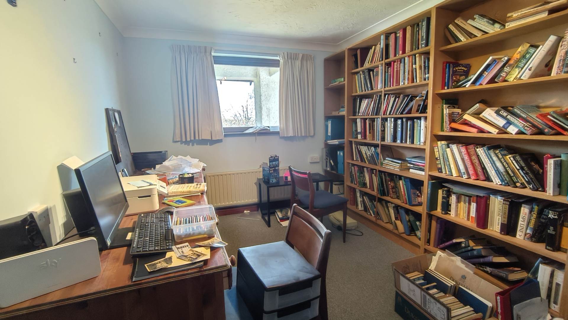 Good sized bedroom with a window to the front aspect. Radiator. Built in book shelving.