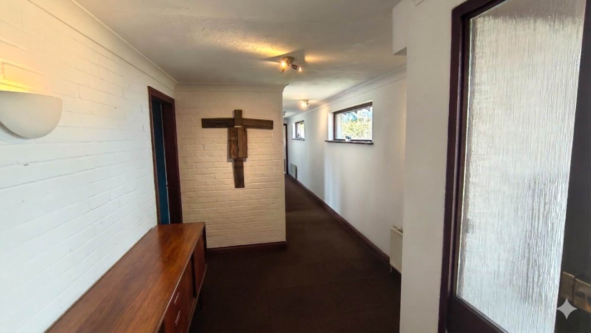 Long expansive hallway with access to all accommodation including a door to the internal garage. Large double storage cupboard. Two central heating radiators. Two long, high level windows to the side aspect. Main access door to the property.