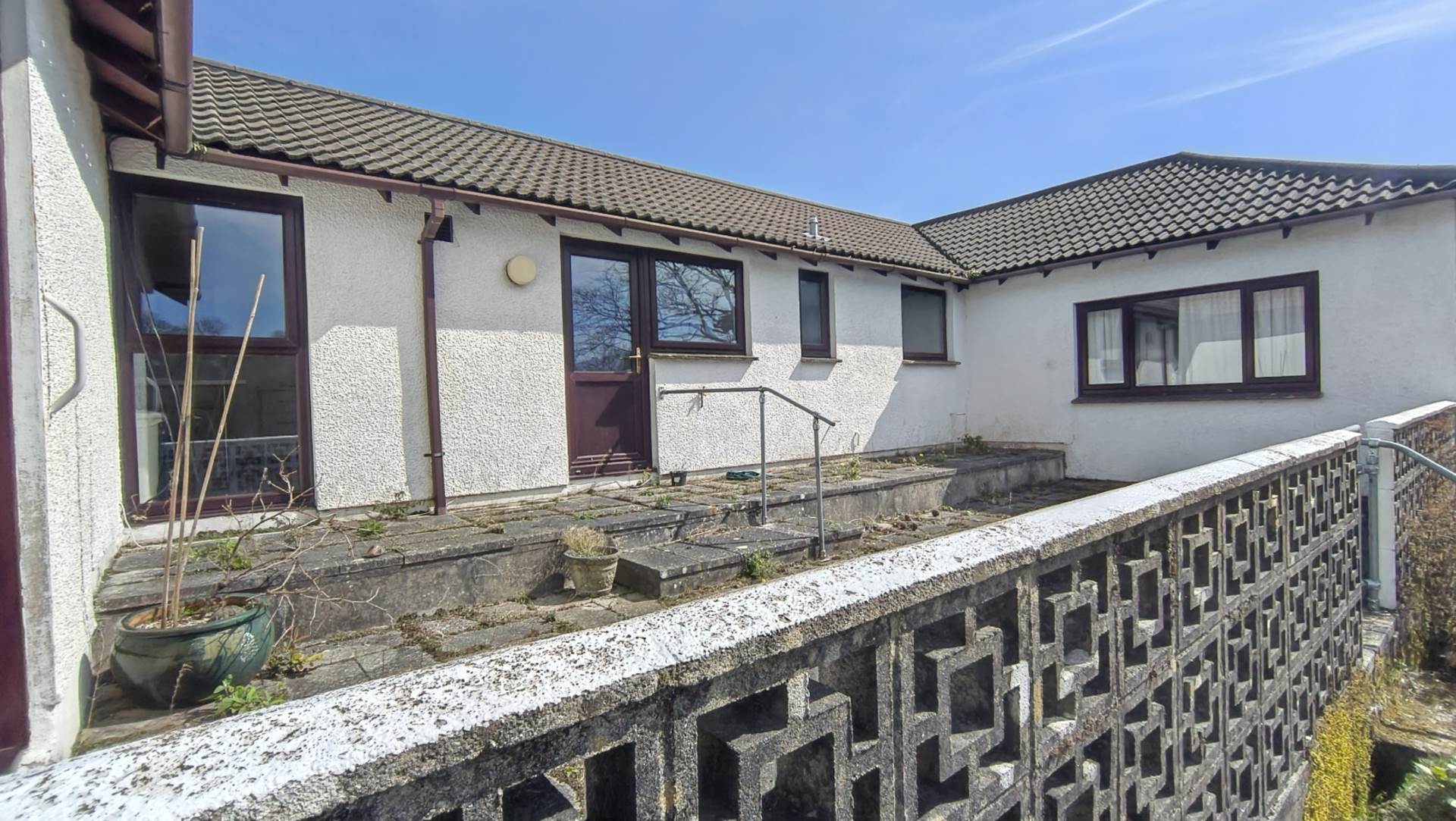 From Warrens Field, drive onto a tarmac driveway with room for 3 to 4 vehicles, ending at the garage door. There is lawn to either side of the driveway with planting to the sides and to the front of the bungalow. The border is a mixture of traditional Cornish wall, and fencing. A path leads along the side of the property with planting to the edge. The path continues around to the rear where steps lead up to the rear garden which is mainly lawn. There is a fence to the rear but there is a small patch of land beyond which also belongs to the property.
